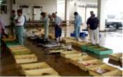 午後10時前に地元の魚屋さんやスーパーの人たちが集まり(30名くらい)競りが始まった。